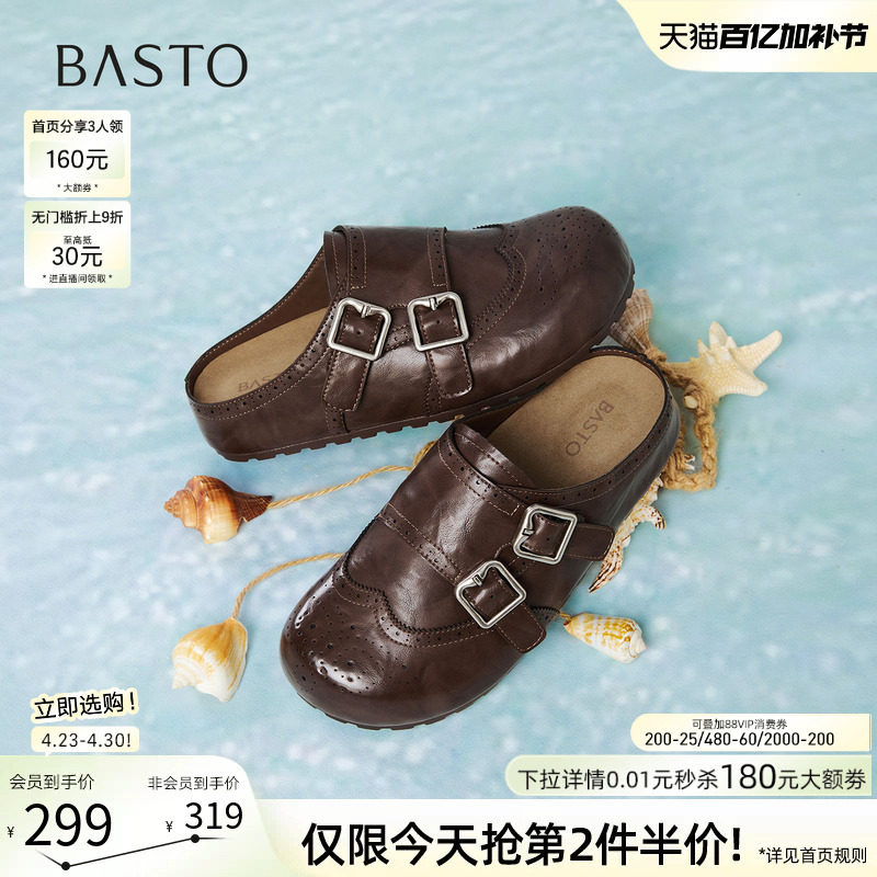 百思图2026夏季新款布洛克勃肯鞋厚底半拖鞋休闲女拖鞋D5072BH6