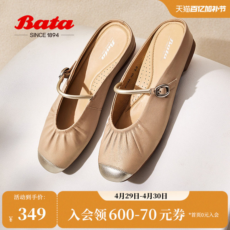 Bata穆勒拖鞋女商场新款羊皮牛皮软底一脚蹬包头拖AUU03AH5