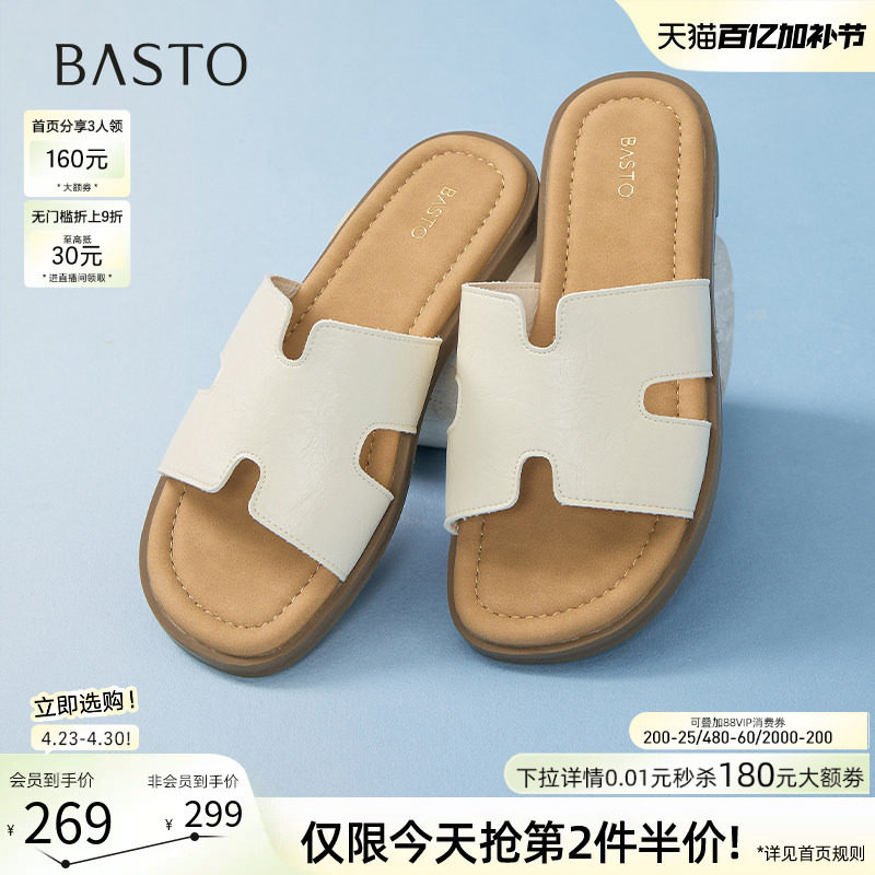 百思图夏季新款简约时尚户外休闲一字拖平跟女拖鞋F3035BT5