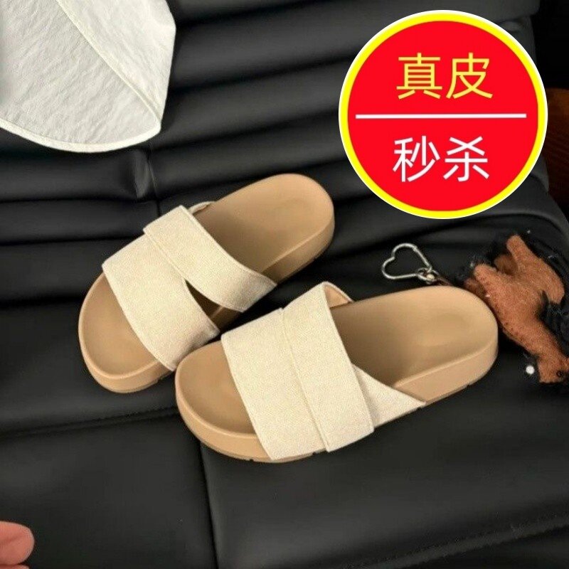 2026夏季新款真皮仙女风凉拖鞋女外穿百搭厚底妈妈鞋防滑透气拖鞋