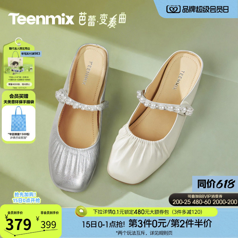 天美意仙女风珍珠内增高穆勒包头半拖鞋女外穿凉拖鞋2026夏季新款