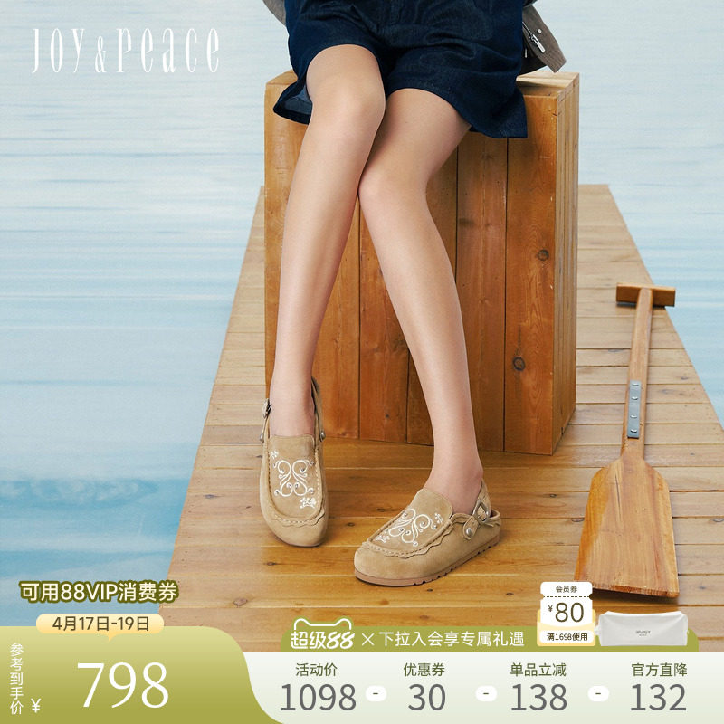 真美诗2026春新款牛皮复古刺绣包头拖鞋轻盈厚底勃肯鞋女YZB31AH6
