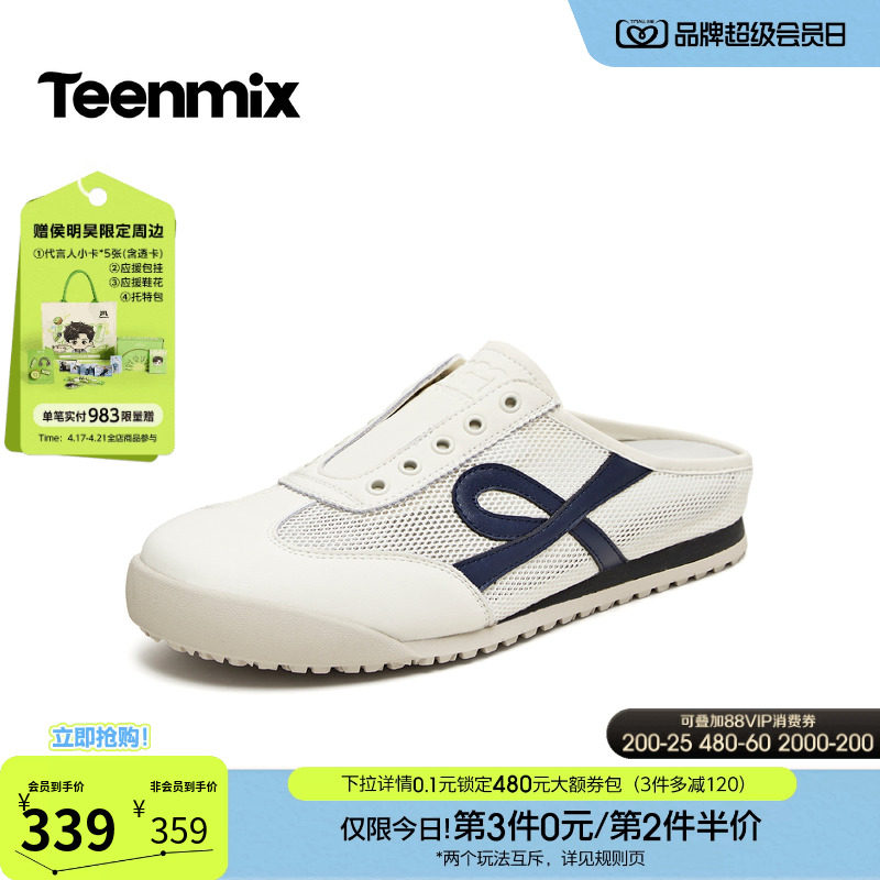 天美意网面透气阿甘德训鞋包头半拖鞋女外穿休闲凉拖鞋2026夏新款