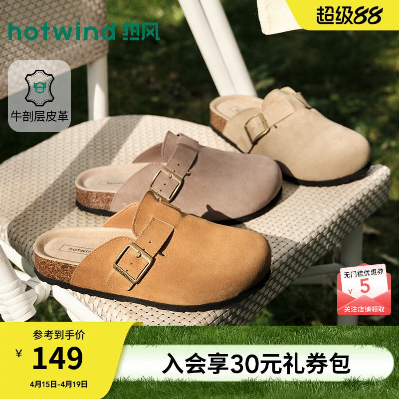 热风复古勃肯鞋女2026年春季新款杏色百搭包头拖半拖外穿拖鞋女鞋