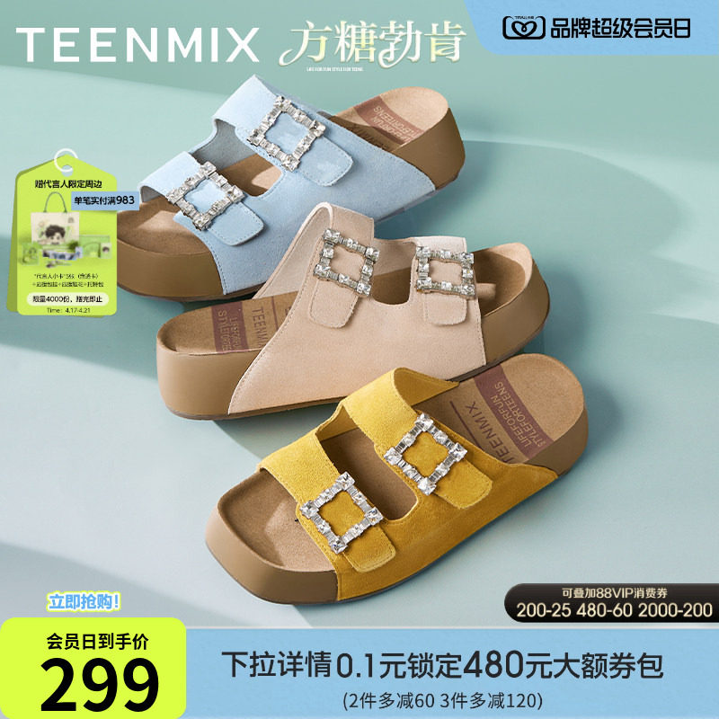 天美意一字拖厚底增高方糖勃肯拖鞋女外穿凉拖沙滩凉鞋夏季新款