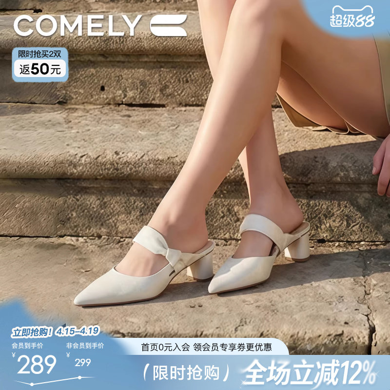 康莉羊皮尖头穆勒鞋女25年春季新款真皮时尚优雅低跟半拖鞋5A210D
