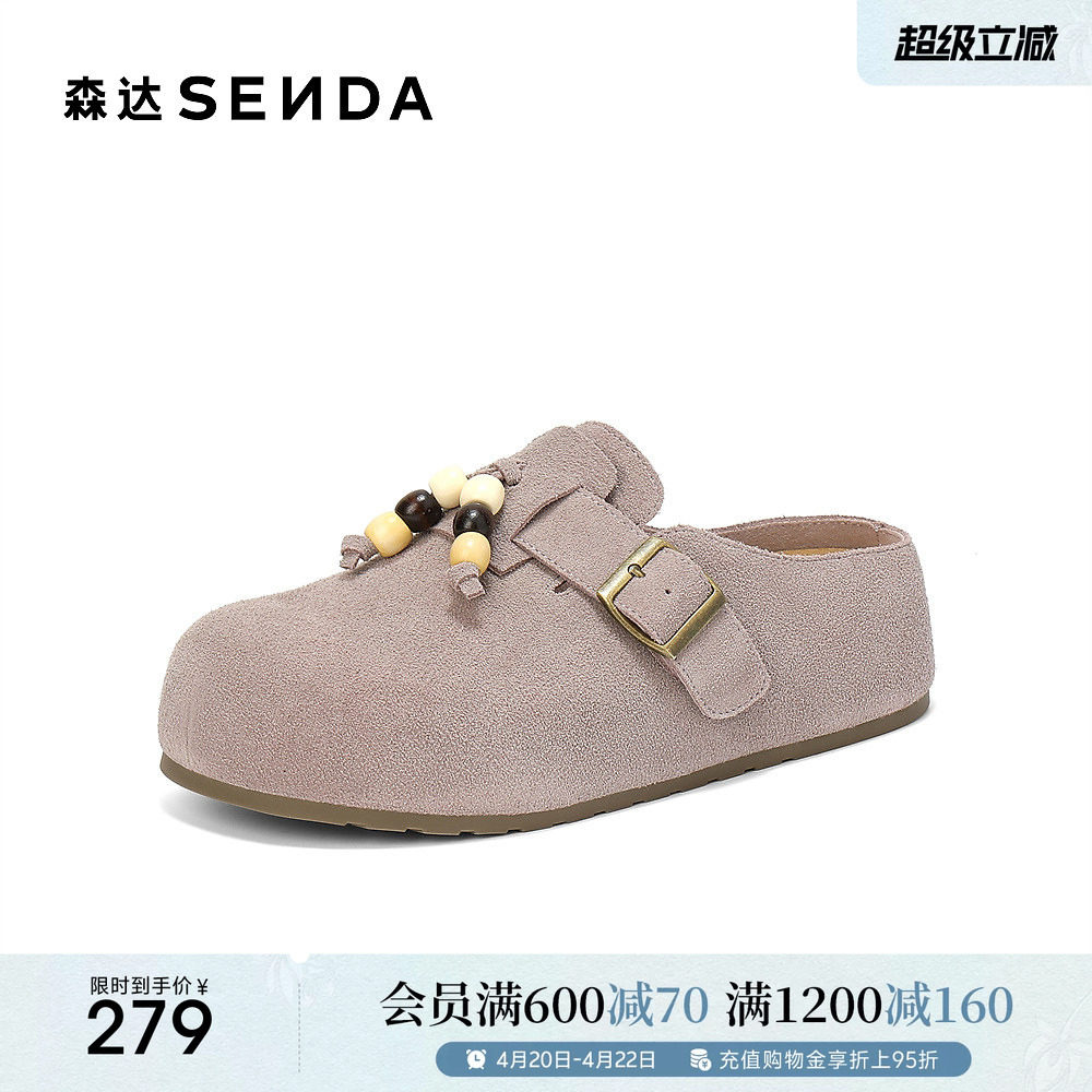 森达全包勃肯鞋厚底春季新款女鞋商场同款超火绝美一脚蹬外穿拖鞋