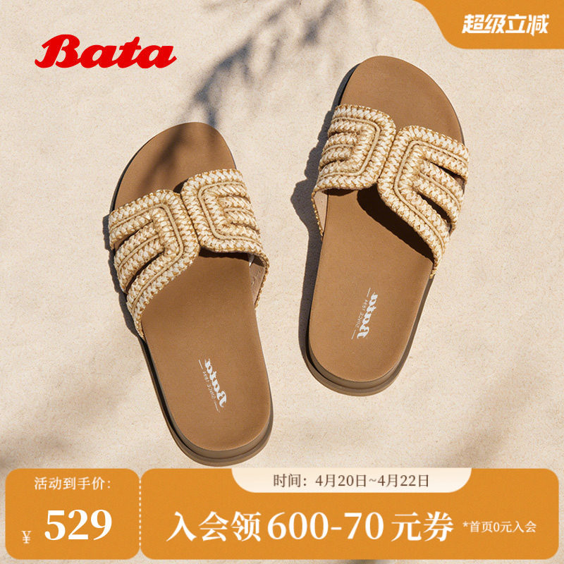 Bata罗马拖女2026夏商场新款时尚编织度假风休闲外穿拖鞋58003BT6