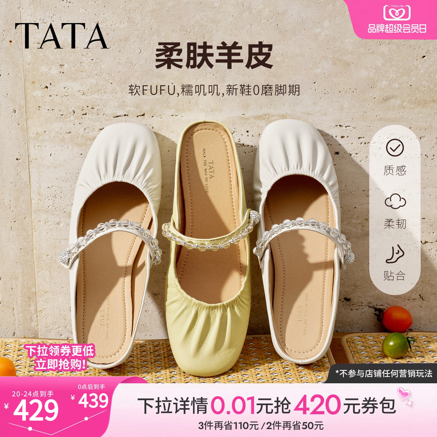 TATA他她平底穆勒鞋女皮质拖鞋女外穿时尚凉鞋单鞋2026新YSW08BH6