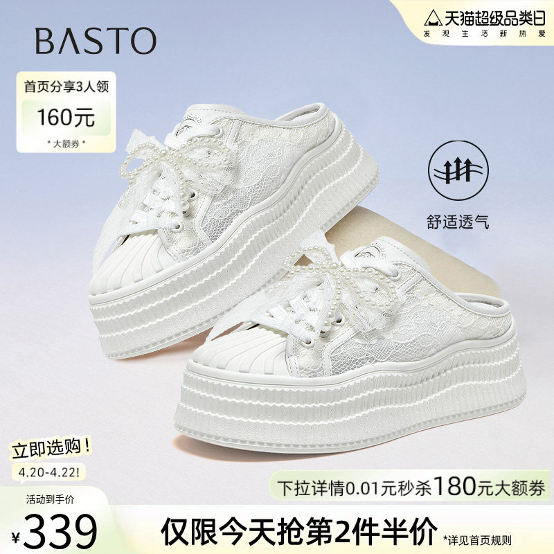 百思图夏季新款商场同款时尚休闲小白拖厚底女拖鞋E0323BH5