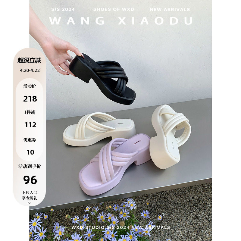 【王小毒】日光岛屿○5厚底拖鞋女夏外穿沙滩交叉带增高一字凉拖