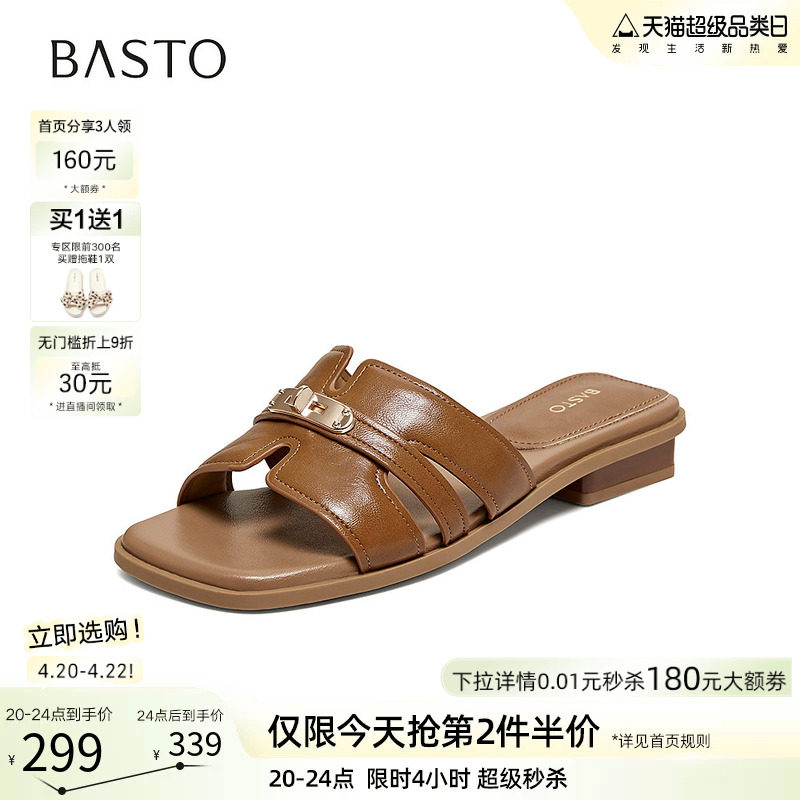 百思图2026夏季新款复古休闲粗跟一字拖休闲外穿女拖鞋F2306BT6