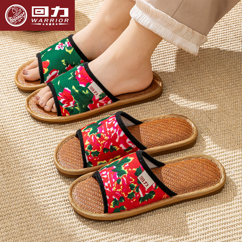 回力凉席竹藤编凉拖鞋女爆款夏透气居家亚麻编织拖鞋不臭脚男HL50