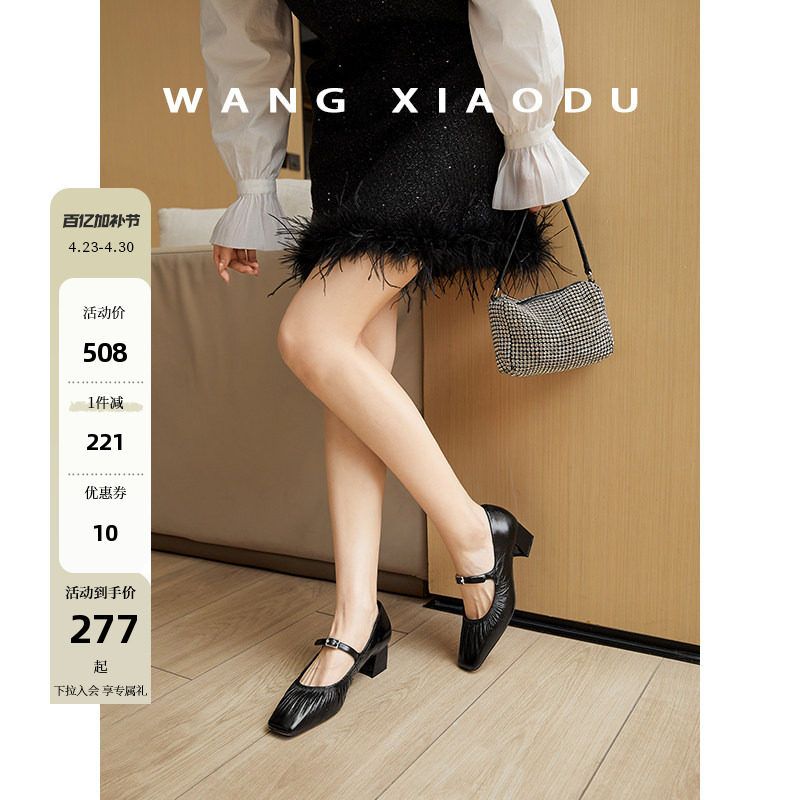 【王小毒】日光倾城○真皮玛丽珍拖鞋2026春新款皱褶方头浅口单鞋