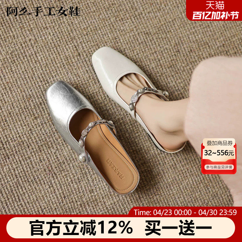 阿么手工女鞋气质银色包头半拖鞋女夏季优雅好看一字带穆勒凉鞋女