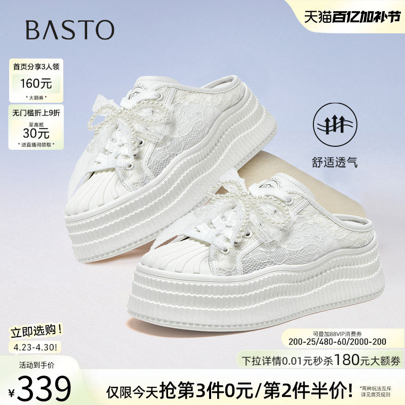 百思图夏季新款商场同款时尚休闲小白拖厚底女拖鞋E0323BH5