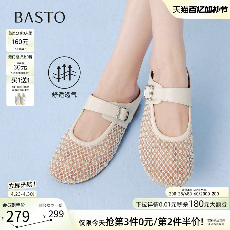 百思图2026夏季新款透气包头穆勒拖鞋凉拖休闲外穿女拖鞋W1207BH6