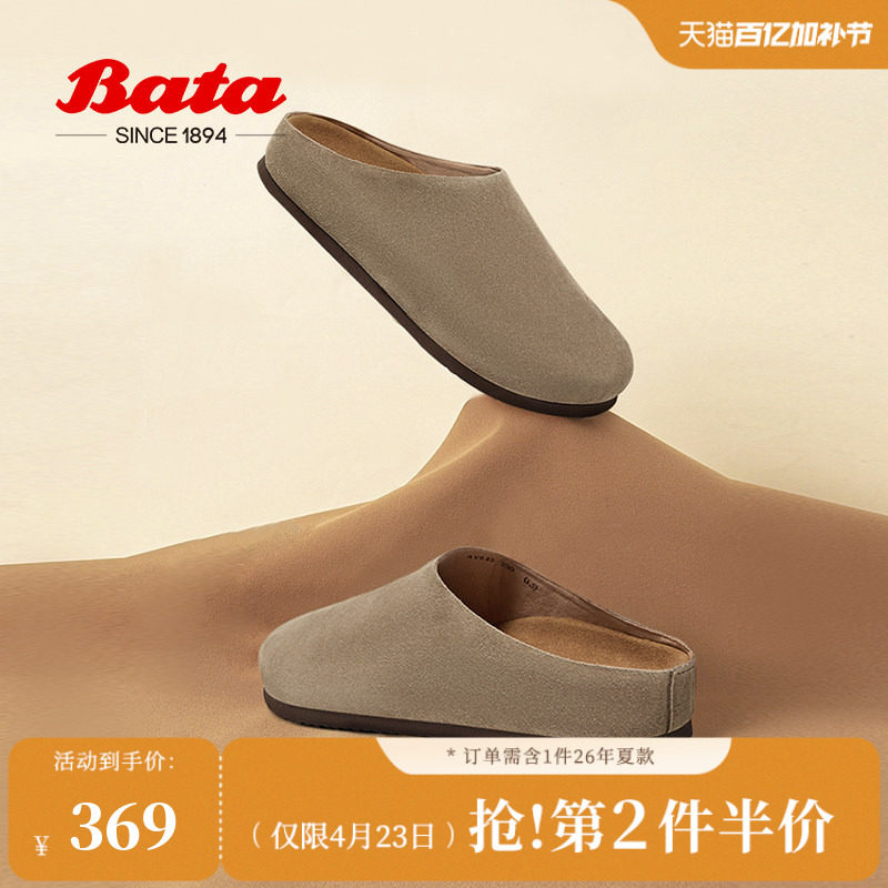 Bata穆勒拖鞋女商场新款英伦羊皮软底一脚蹬包头拖AMV49AH5