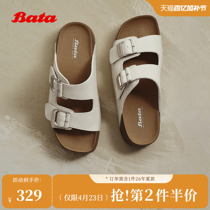 Bata勃肯拖鞋女商场新款英伦风牛皮外穿厚底凉拖鞋25300BT5