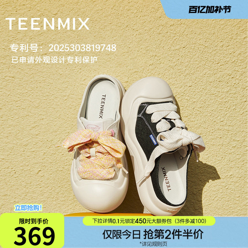 天美意趴趴团子厚底小白鞋包头半拖鞋女凉拖大头鞋板鞋夏季新款