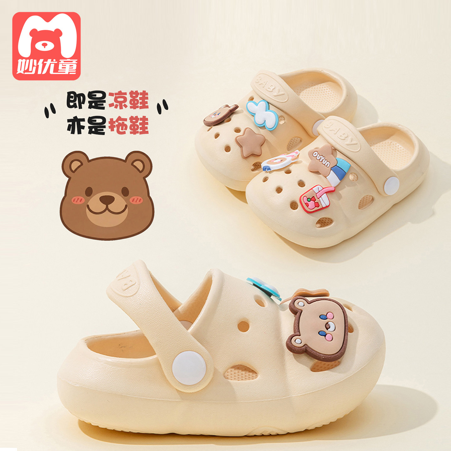 儿童洞洞鞋宝宝拖鞋男童女童夏季凉拖包头婴幼儿小孩防滑软底凉鞋