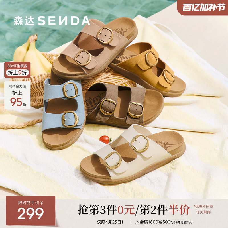 森达流金麻薯勃肯鞋女夏新商场同款柔软舒适休闲凉拖鞋4RNB1