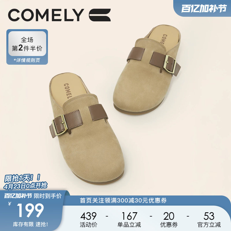 康莉真皮勃肯鞋半拖鞋女外穿2025新款夏季穆勒鞋包头鞋一脚蹬博肯