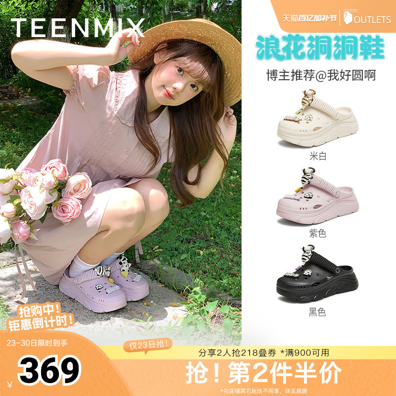 天美意浪花洞洞鞋厚底增高凉拖鞋女外穿沙滩鞋夏季新款CMX14BL5