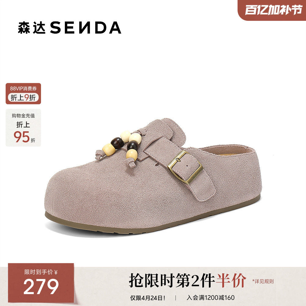 森达半托勃肯鞋女春秋季新款时尚厚底增高居家外穿拖鞋ZTH94CH5