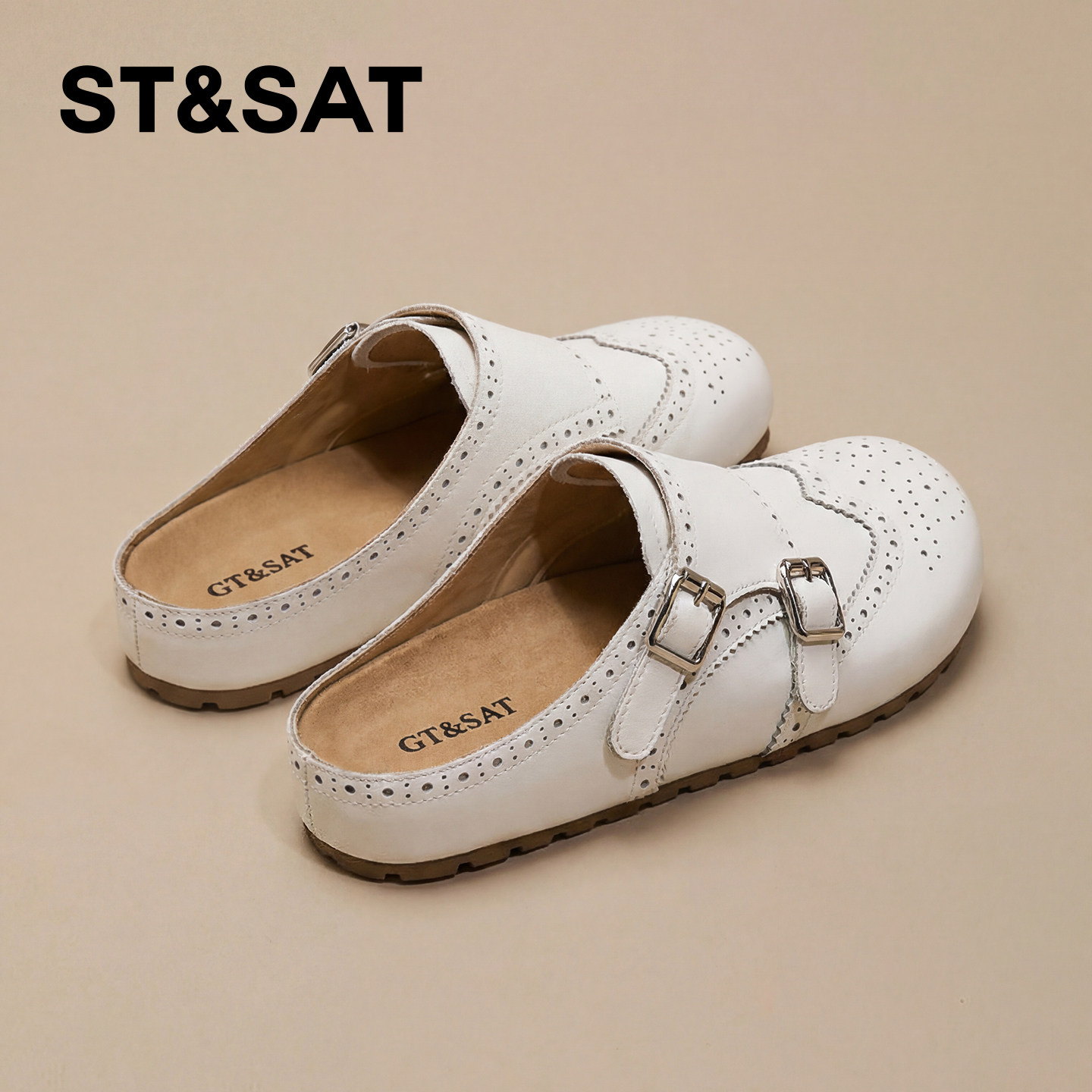 星期六厚底勃肯鞋女2026新款春季雕花搭扣穆勒鞋舒适外穿半拖鞋女