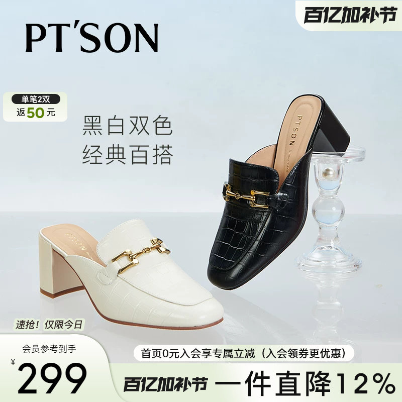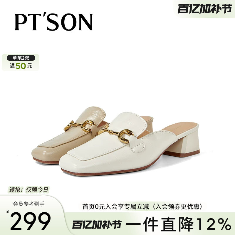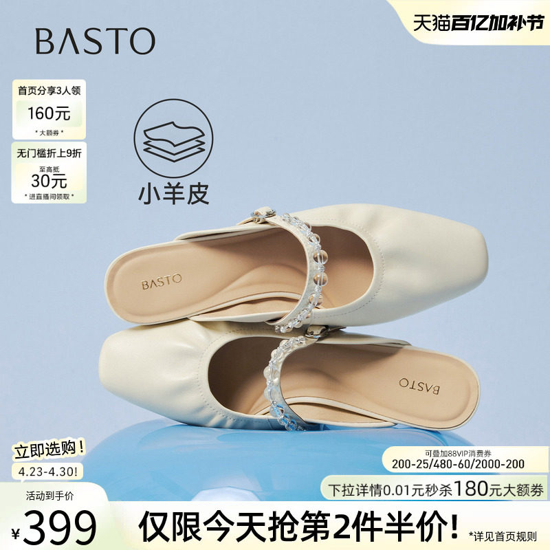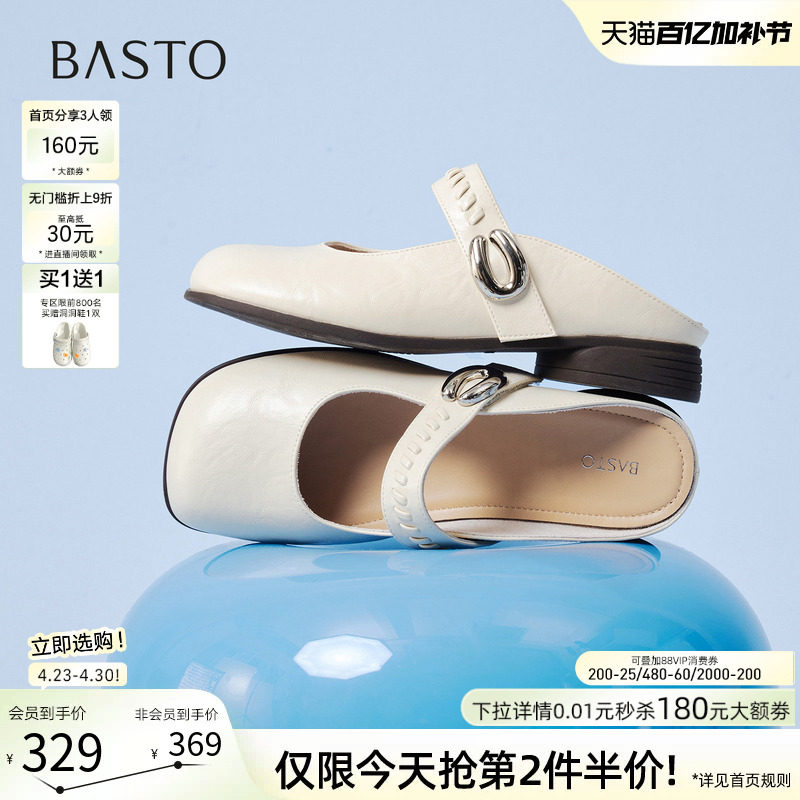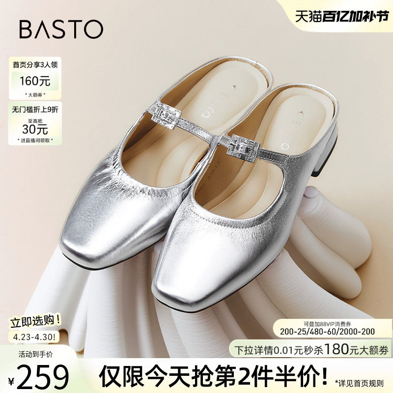 百思图2026夏季商场新款玛丽珍穆勒拖方头外穿女包头拖鞋C7123BH6