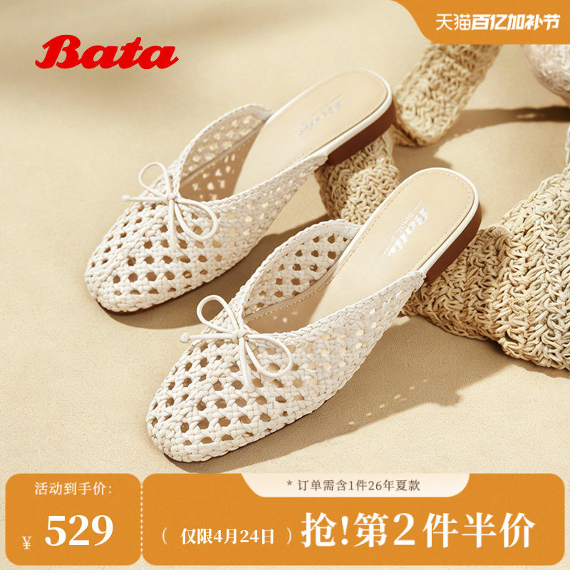 Bata穆勒鞋女2026夏商场新款编织风休闲度假软底包头拖鞋AVL52BH6