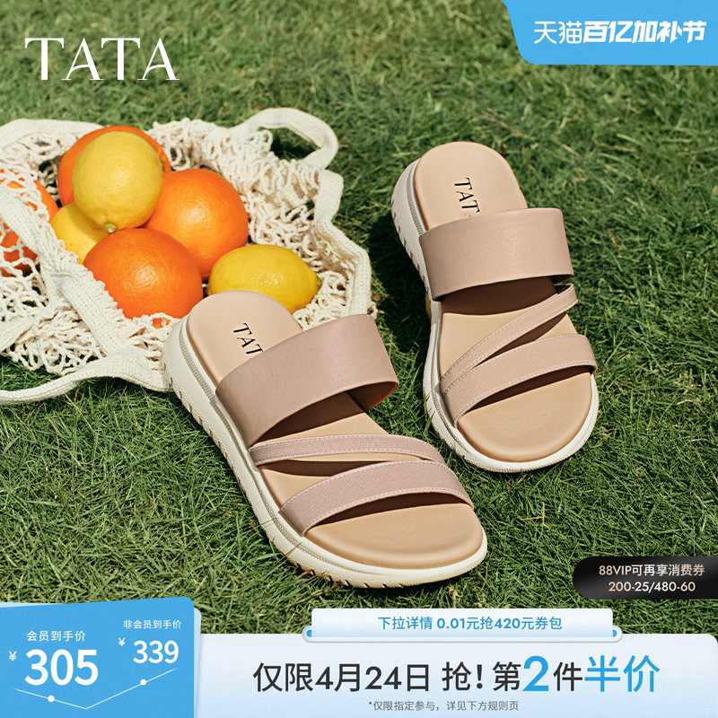 TATA他她厚底休闲鞋拖鞋女鞋复古气质一字凉鞋夏季新款YQW01BT5