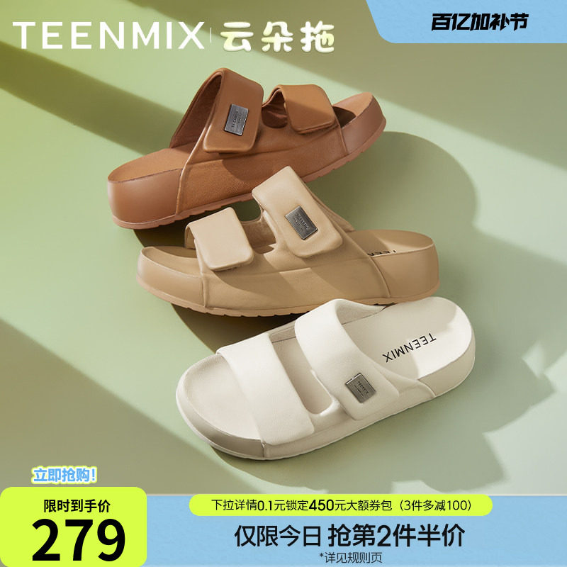 天美意云朵拖一字拖增高厚底拖鞋女外穿凉拖休闲凉鞋夏季新款