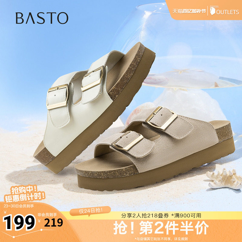 百思图夏季新款勃肯鞋时尚户外百搭休闲厚底女凉拖鞋D3237BT5