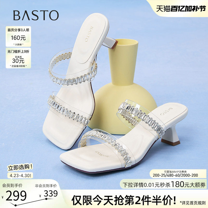 百思图夏季商场新款时尚气质一字拖细高跟外穿女拖鞋B5252BT5
