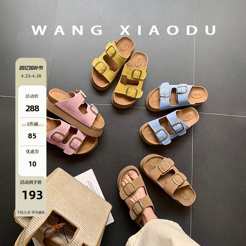 【王小毒】厚底勃肯○增高6cm~多巴胺牛反绒一字拖女夏季沙滩拖鞋