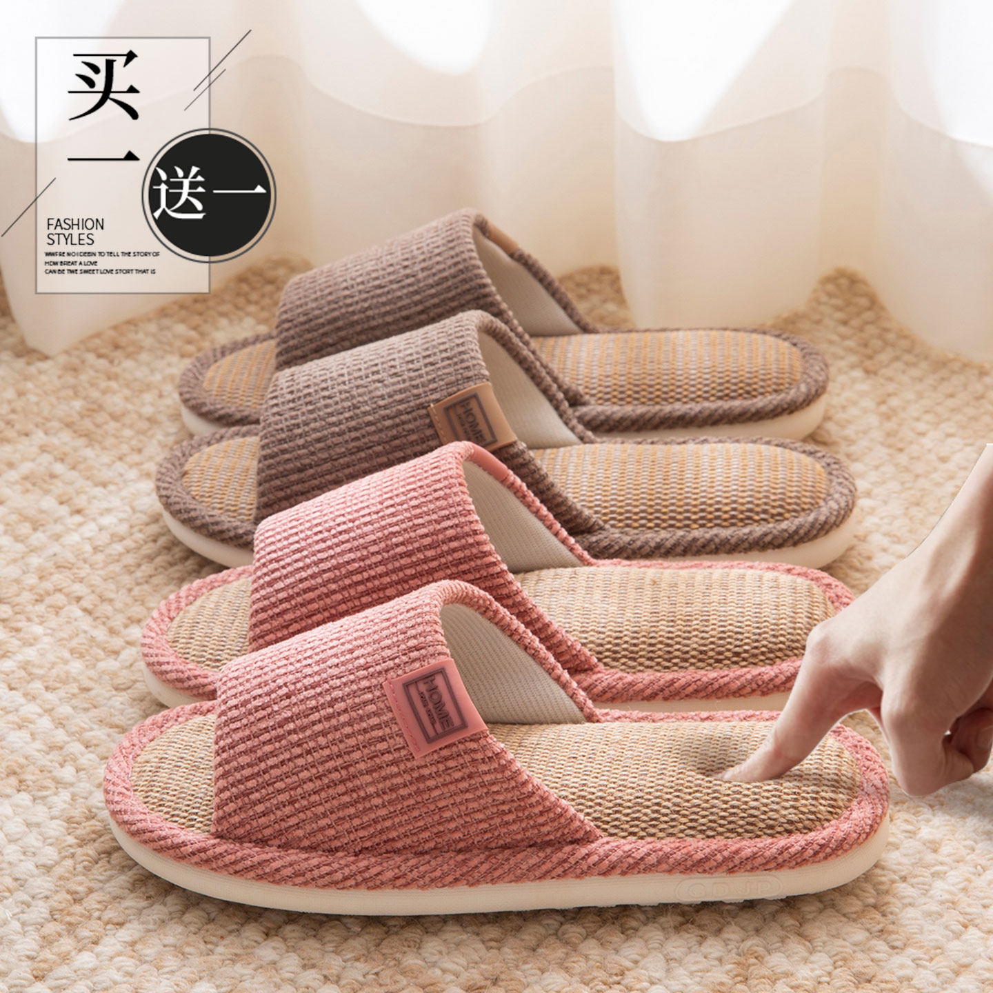 买一送一亚麻拖鞋女2026春秋季新款室内居家吸汗防臭透气防滑凉拖
