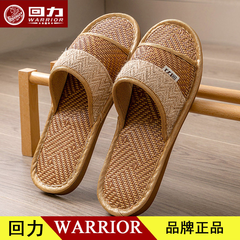 回力藤草竹编织凉拖鞋透气夏季中老人防臭室内木地板亚麻拖鞋HL35