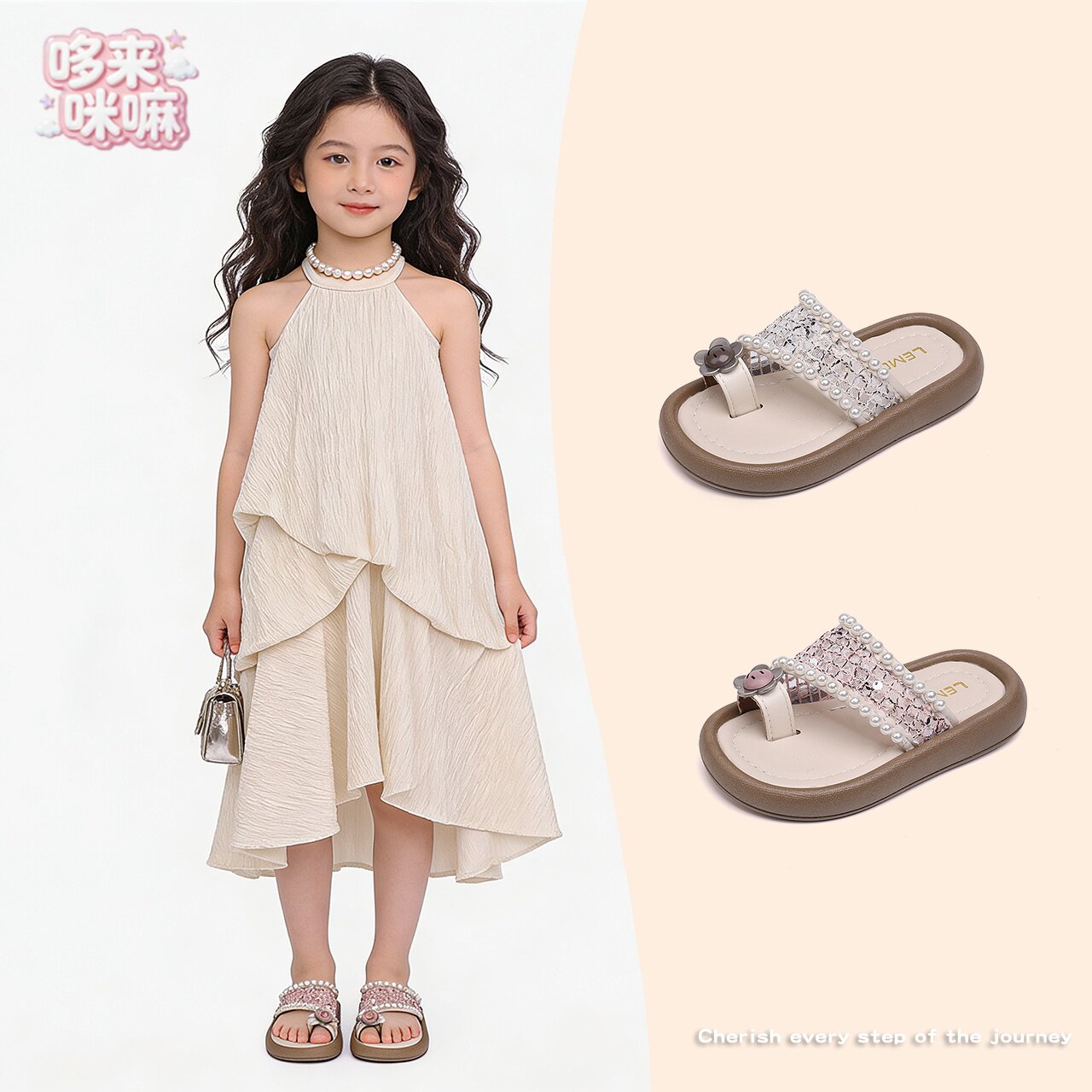 女童露趾凉鞋儿童夹趾凉拖鞋2026春夏新款女宝宝水钻公主鞋沙滩鞋