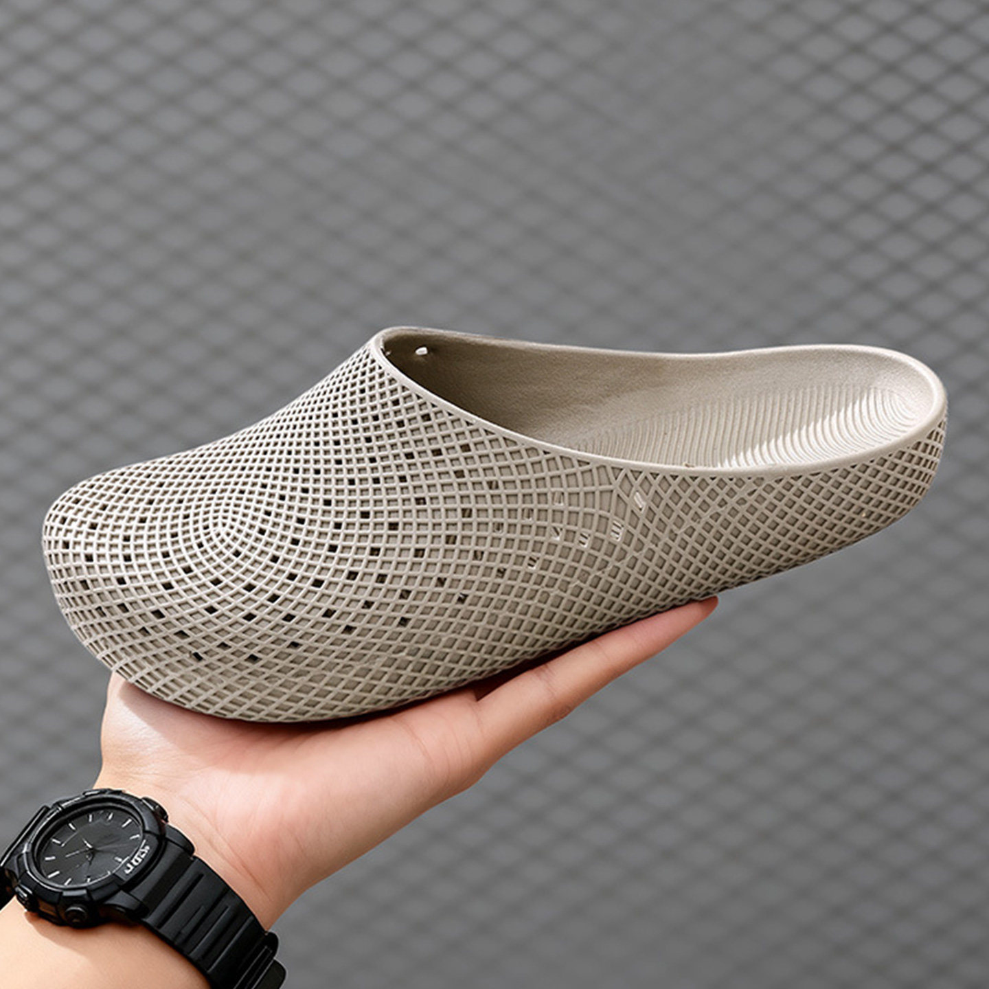 透气洞洞包头拖鞋男夏一脚蹬休闲沙滩鞋涉水防滑厨房车间工作胶鞋