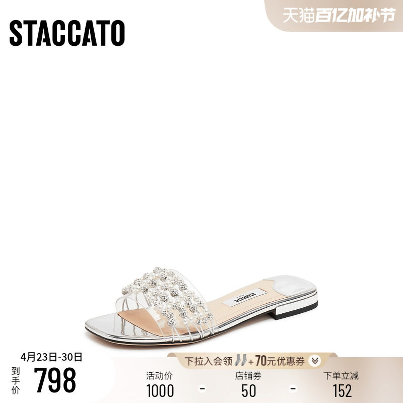 思加图新款仙女鞋凉拖鞋一字拖平底鞋外穿女凉鞋EEQ13BT5