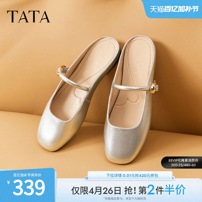 TATA他她设计感包头拖鞋女白色半拖平底通勤穆勒鞋女夏新7QX04BH5