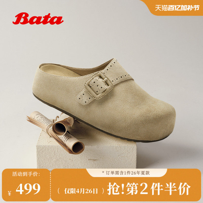 Bata巴斯克勃肯鞋女2026春季商场新款时尚百搭牛剖皮拖鞋ACI04AH6