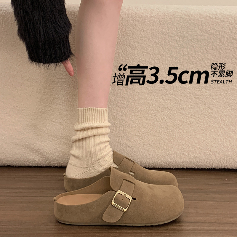 包头半拖鞋女2026年春季新款外穿内增高一脚蹬软底勃肯鞋博肯拖鞋