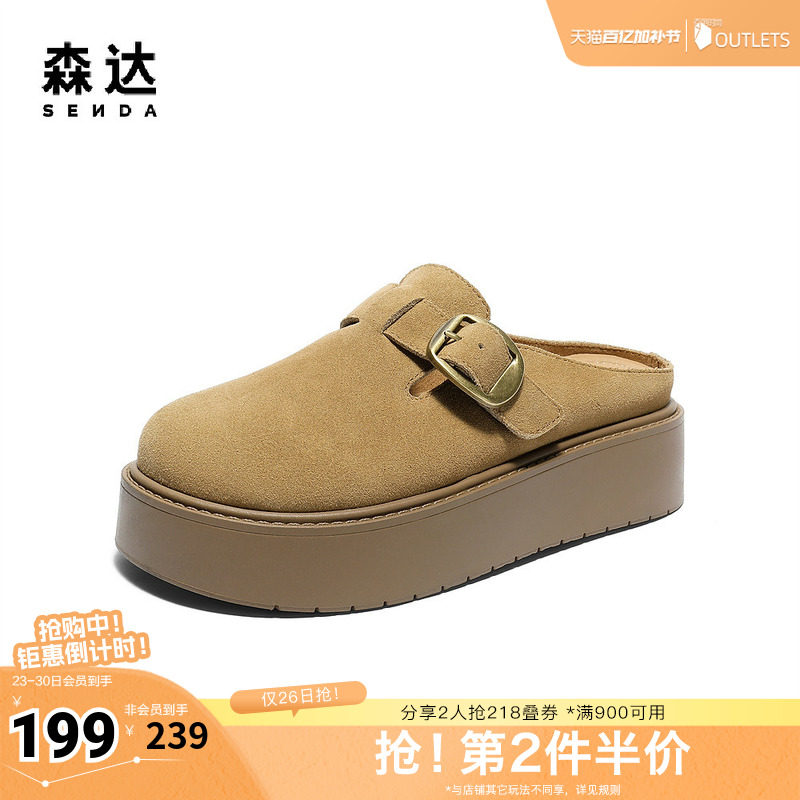 森达包头勃肯鞋女鞋26春新款舒适休闲厚底增高外穿拖鞋凉鞋4ZW31
