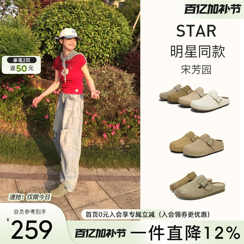 明星同款百田森厚底勃肯鞋女新款包头半拖鞋女一脚蹬懒人鞋子