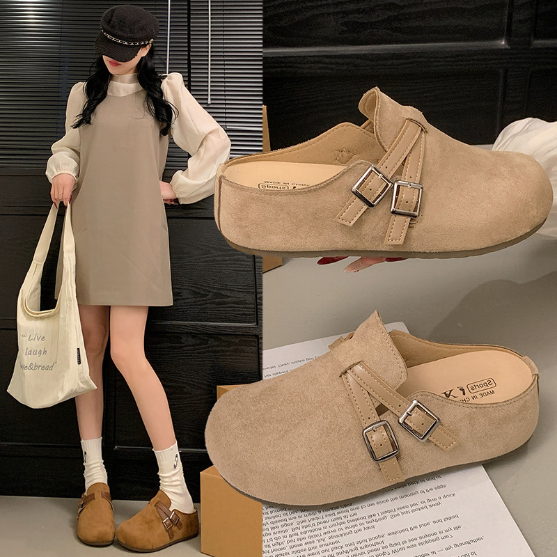 热风复古勃肯鞋女2026年春季新款杏色百搭包头拖半拖外穿拖鞋女鞋