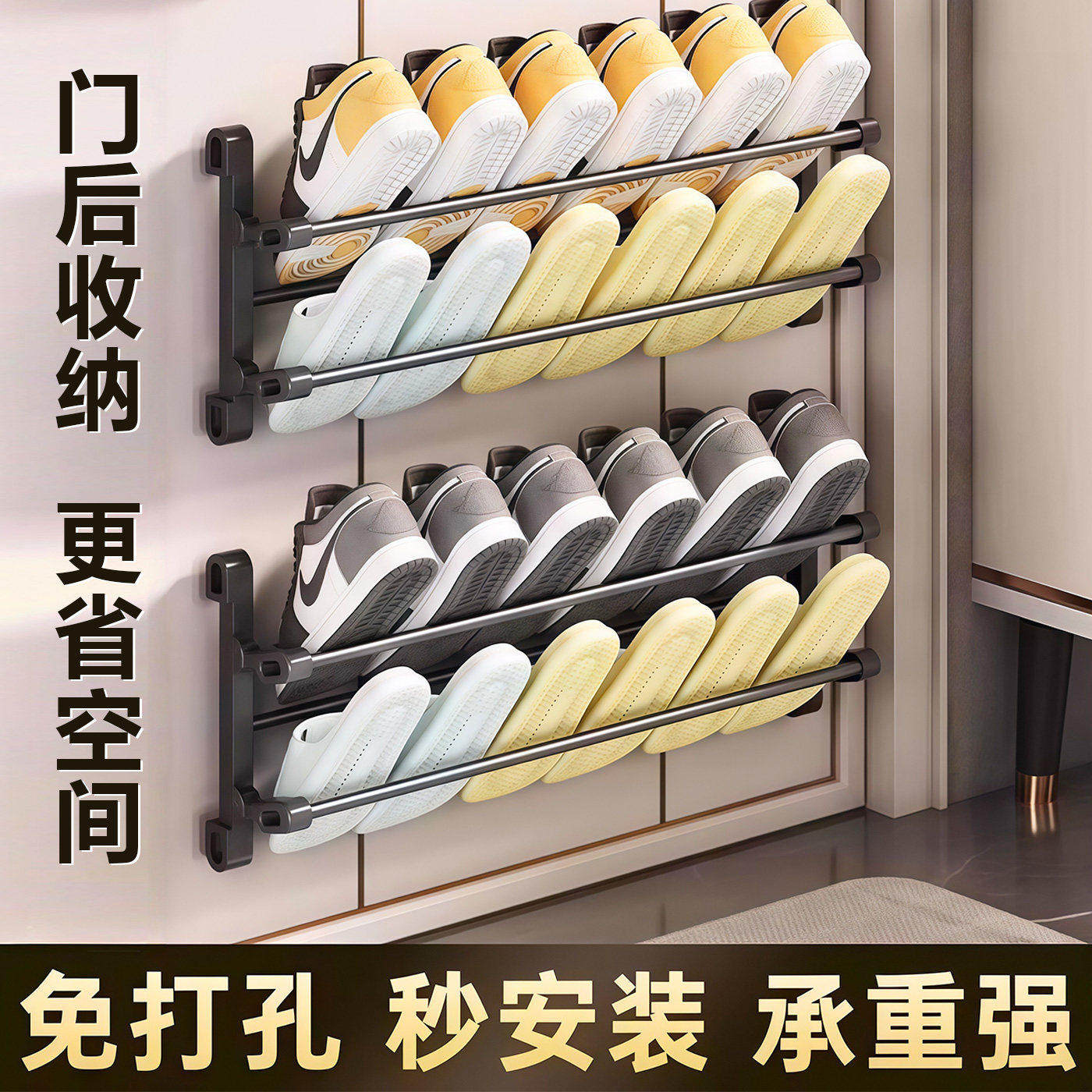 门后鞋架可折叠家用简易折叠壁挂式收纳挂墙浴室拖鞋门上鞋架子
