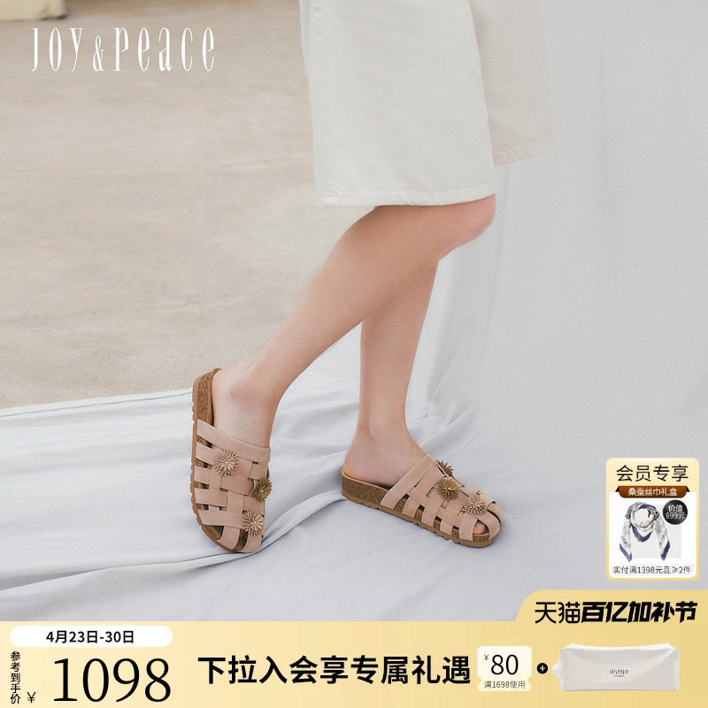 真美诗水果篮子2026夏新款羊皮雏菊编织透气勃肯鞋包头拖鞋女外穿